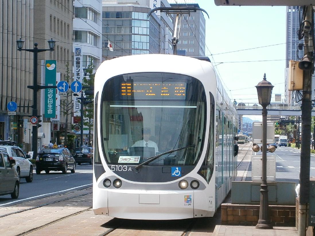 本通から広島電鉄の路面電車に乗車
