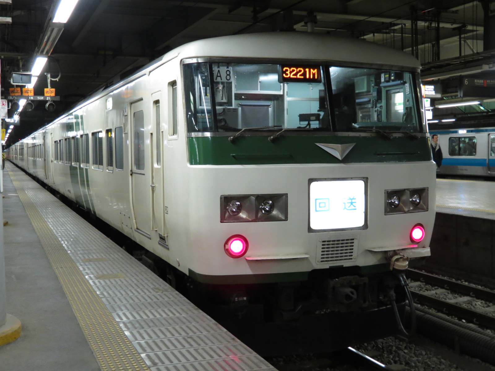 撮った写真は185系の原色の撮影ぐらい・・・。夜ご飯は、持ち金がやばくなってきて、カップラーメンを臨時ホームの階段で食べていたことはここでは秘密にします。20時15分頃には東京京葉ホームにいました。
