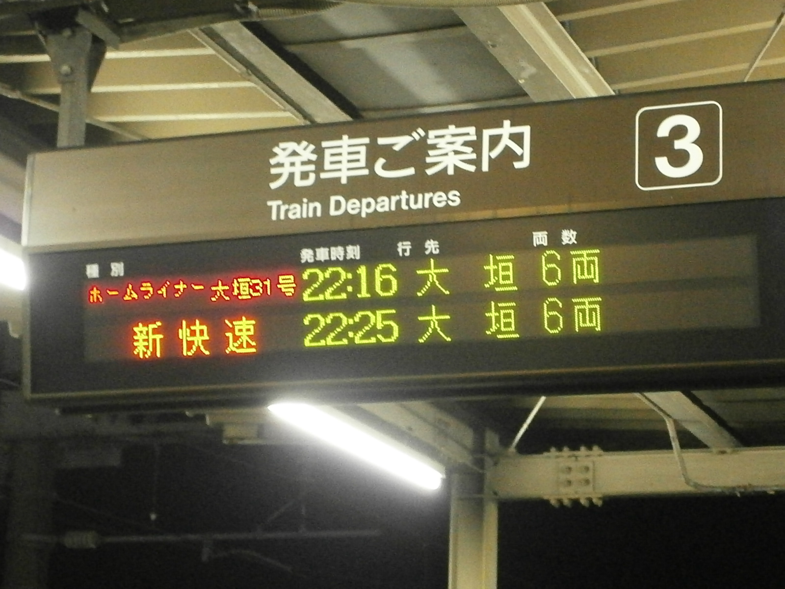 大垣→大阪→りんくうタウン→天王寺(近鉄も)→島本→京都→草津→亀山→南大高